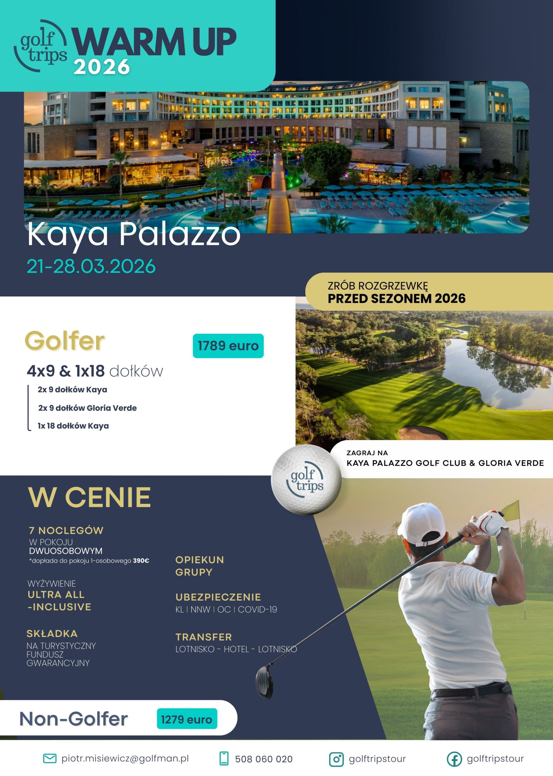 Golf Trips Warm Up 2026 – Kaya Palazzo | 21–28 marca 2026
